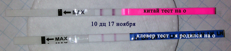 Мне нравятся эти тесты, до О. полоски почти не видно, а в О. очень яркая жирная полоска. Все четко и понятно. Постоянно заказываю их из Китая по 40-60 штук