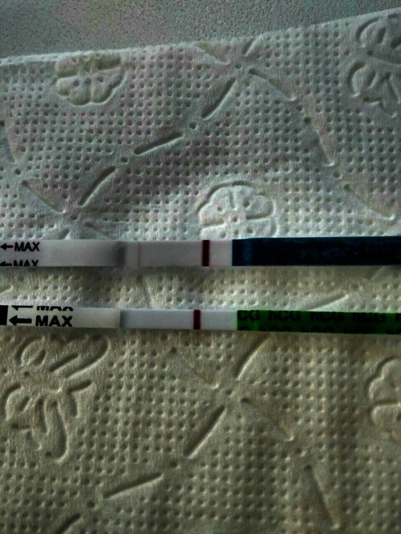 У меня в первую б. как было - сделала тест в туалете на работе 😁😁😁, думаю чистый, убрала в косметичку. Потом мин через десять достала, смотрю, а там // и это в день Х
