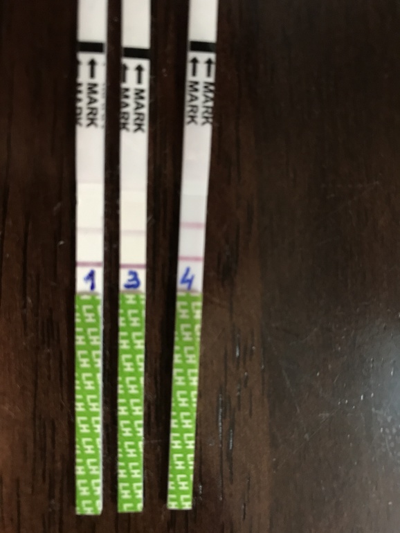 Овуляция( тесты на овуляцию)Не понимаю, это она или ещё подождать? На фото почему-то на первых двух тестах полоски не видны, но они есть бледные. Цифры - это дни после мес.