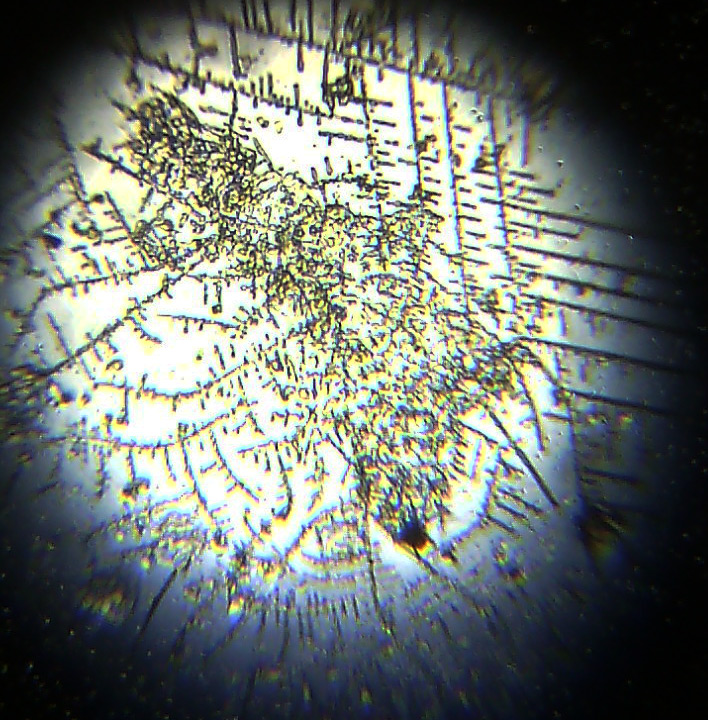 Смотрю в микроскоп и теряю дар речи. Вижу конкретный такой папоротник! Кое-как наловчилась и сфотографировала на телефон. Фото: