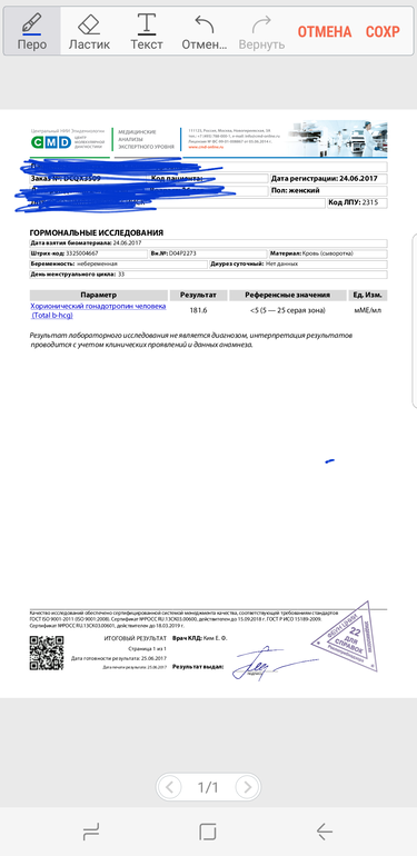А они не работают в воскресенье ? У вас есть KDL? Если есть , сдавайте там. Врач бесплатно на горячей линии по результатам , приём анализов без выходных с 7 утра. И сама лаборатория работает 24 часа в сутки не на забор материала, а на выдачу результатов. Я вчера сдала в 9 утра ХГЧ , мне в 22 часа на электронку пришёл результат .День в день, хотя в договоре написано, что на следующий .
