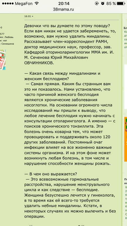 наступит, но я тогда и не планировала вообще) ! Ну и как видишь до сих пор я не Б, значит тонзиллит это лишь одна из огромного количества препятствий для Б, считаю что совсем крошечное влияние оказывает на зачатие этот тонзиллит.