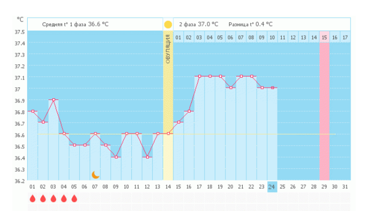 Когда я принесла ей первый график, то она по нему мне сказала, что О была чуть позже,чем обычно у всех и после того как темпр поднялась до 37.1 на сл день тут же упала до 36.7 и больше не понялась до 37 ни разу. Сейчас пью дюфастон и темпр во 2 фазе еще ни разу не опустилась ниже 37 я так понимаю какой то эффект есть все таки. Но все равно не могу понять былали О в этом цикле и когда именно( не понимаю как график расшифровать(