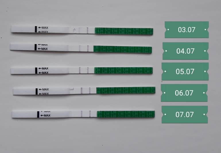 Это мои тесты, сегодня полоска уже не такая яркая была. ПА был 04.07 и пока