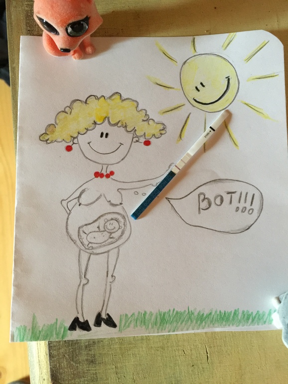 У меня сын балдеет от беременных, про каждую встречную говорит: Тетя беременная)), мне нравиться. А сегодня нарисовал минирисунок