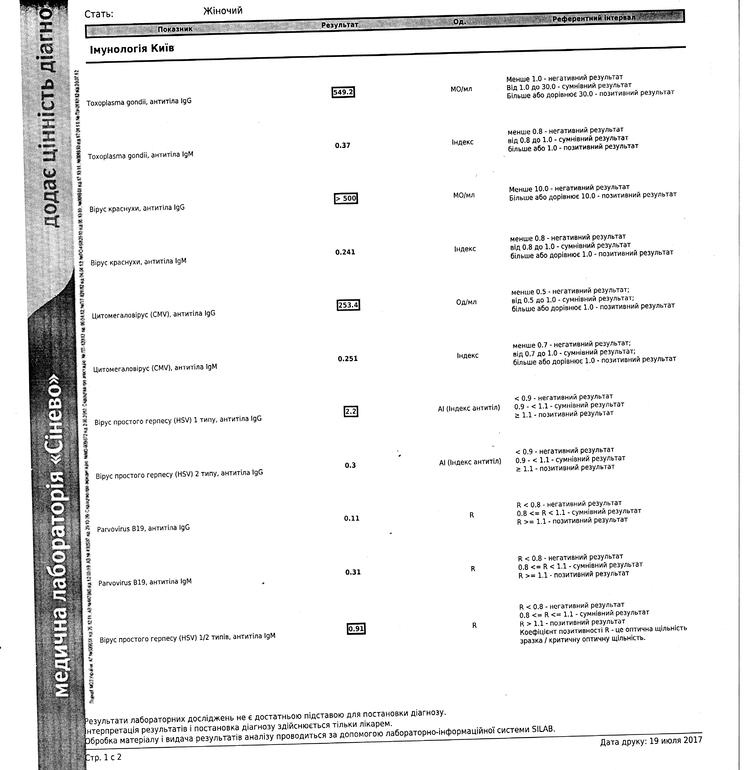АнализыВ пятницу пойду к врачу.Почитала и поняла, что есть иммунитет к токсоплазмозу и краснухе.Не поняла про герпес первого и второго типа, высыпания не были замечены ранее.Просто ШОК, так как, антитела IgM сомнительный результат(