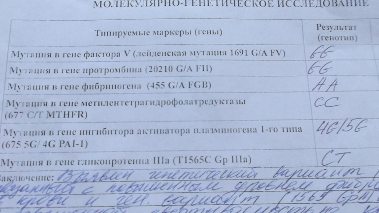 2 июля была вакуум-аспирация после ЗБ. Сдала анализ на наследственные тромбофилии, врачи думают проблема кроется в них. Ничего толком сама не поняла, врач моя выходит из отпуска в августе. Может кто то из вас понимает в этом анализе?