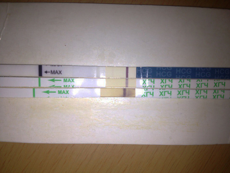 У меня на Эвике пару дней назад был реагент, как на верхнем тесте. А на следующий день пришли месячные... Но второй тест Эви утром был кристально чистым. Если на нескольких тестах полосочки, то это точно беременность)