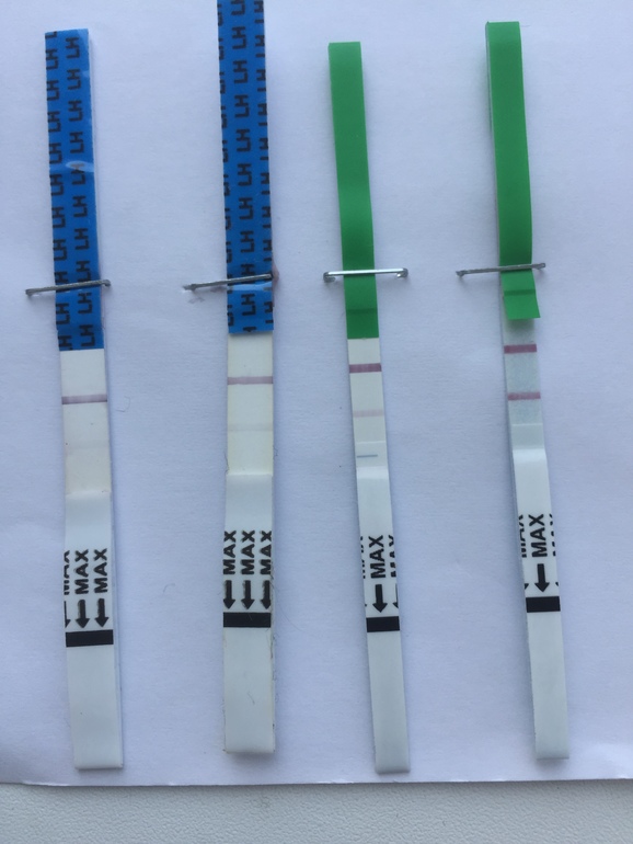 Я делала тесты на овуляцию один единственный цикл в жизни. Полоска по яркости так и не сравнялась, как написано в инструкции. Но я забеременела! Скоро рожать. Вот фото. ПА были на 10, 12, 14 и 16 дни.