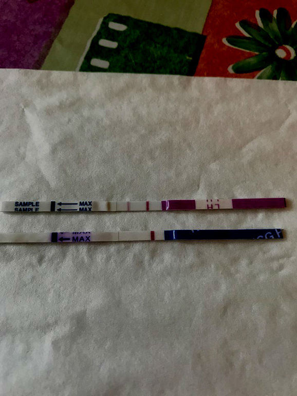 Вот мои сегодня на овулю, 12 дц, кажется она очень тянет правый яичник, для меня вообще все ощущения странные, это 2 цикл без противозачаточных, а у я Вас на тестике что-то проглядывается