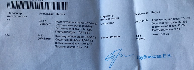 очень сильно завышен лг и соотношение лг/фсг у вас больше 2,5, плюс тестостерон высокий, все признаки СПКЯ. еще бы АМГ для наглядности. если и тот высокий, то СПКЯ 100%. сдавали на 3-5ДЦ?