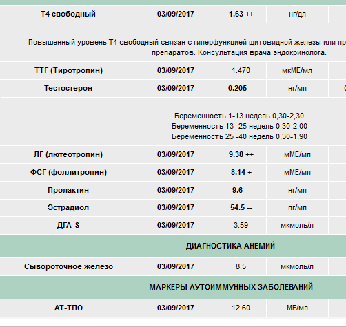 нормы тоже включите в анализы, у каждой лабы они свои.