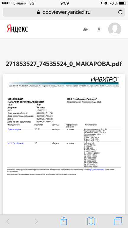 Смотрите ХГЧ в динамике, он должен вырасти в 2р через 48 часов.