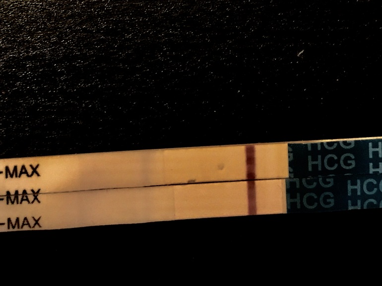 Ну на верхнем точно видно))) А можно пойти и сдать кровь, или цифровой Клиаблу купить.))) Но проще и результативней кровь)) Я до 8го дня задержки ломала глаза на тестах, но потом пошла и сдала кровь на ХГЧ и повезло, что утром сдала. а вечером результат на мейл прислали и был отрицательным)) Месячные пошли на 10й день))) Но были тоже призраки. Но Ваш то на фото видно)))