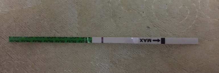Для первого дня задержки это конечно светловато, но мерещится что то... Вот заскринила и увеличила. Или это уже моя фантазия...