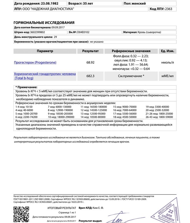 День Х наступил!Девчонки всем Привет! Сегодня у меня второй ДЗ. Сразу скажу тесты специально не стала делать. Боялась увидеть призраки а потом долго присматриваться переживать. Решила сразу поехать сдать ХГЧ и прогик на всякий случай. Все таки он более информативен. И вот результат. В тот же день. Боги!!! Я честно не ожидала. Первый день последней менструации 12.08, овуля ориентировочно 24.08-25.08. Цикл 28 дней. Сегодня 29. ДПО 15 если я правильно считаю. Девчонки, подскажите как думаете цифры нормальные? Особенно прогик? Я в нем вообще не разбираюсь. голова кругом... Руки трясутся.