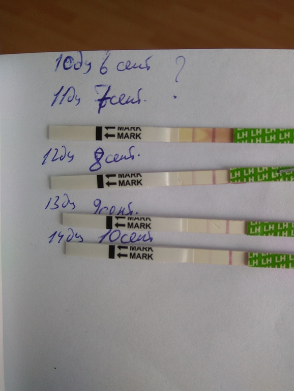 Видимо, овуляцию тесты показывали раньше. Эти все отрицательные. Вы ее пропустили. У меня такой же цикл, овуляция всегда на 10 день.