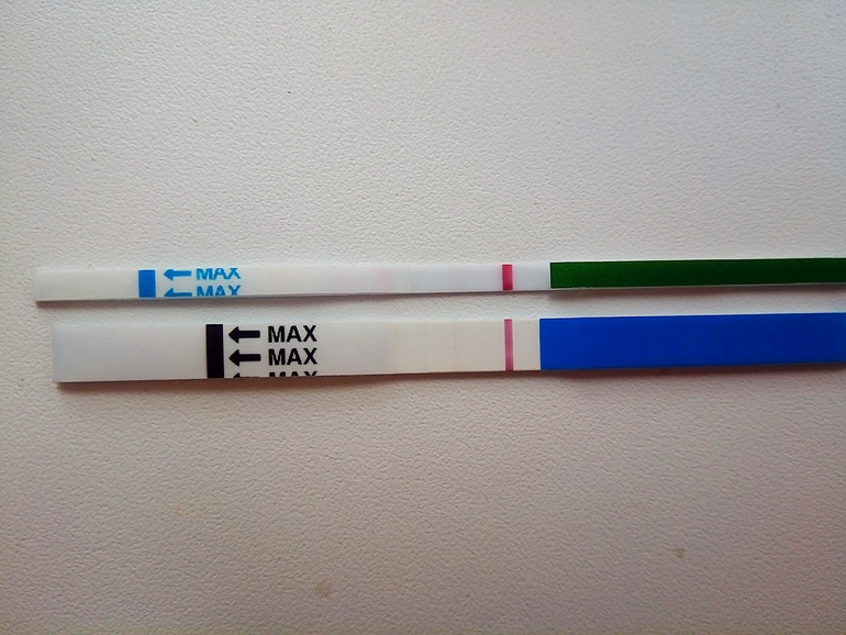 Ждем дня Х (Признаки беременности / Тесты)Овуляция была поздней,почти перед ожидаемыми месячными, в 1 дз набухла и сильно сильно заболела грудь,кололо в матке, тест дешевый самый был кристально отрицательный,также и на 2 дз. Я уже думала,сбой,на 4 дз,муж, который был уверен,что получилось, уговорил еще тест купить.... Купила другой. Сделала в 13.30, сразу две полоски,вторая бледная,но розовая,тут делаю снова тот дешевый,и он с //.... Я радуюсь... Сообщила мужу,сестре,маме,папе. Сегодня решила сделать еще и снова тот дешевый ( я много набрала их). А он бледнее вчерашнего,но это на 2 мочу утром,т.е не после ночи, а через часа 2. Перепугалась,поехала купила клеаблю цифровой и эвик,жду время,чтоб сделать и переживаю.... Грудь так же болит,выделений нет никаких плохих... Держите кулачки за нас. У кого то может тест утром то же был бледнее,чем вечером? Вот нижний вчера в 13.30 и верхний утром на 2 мочу в 9.30