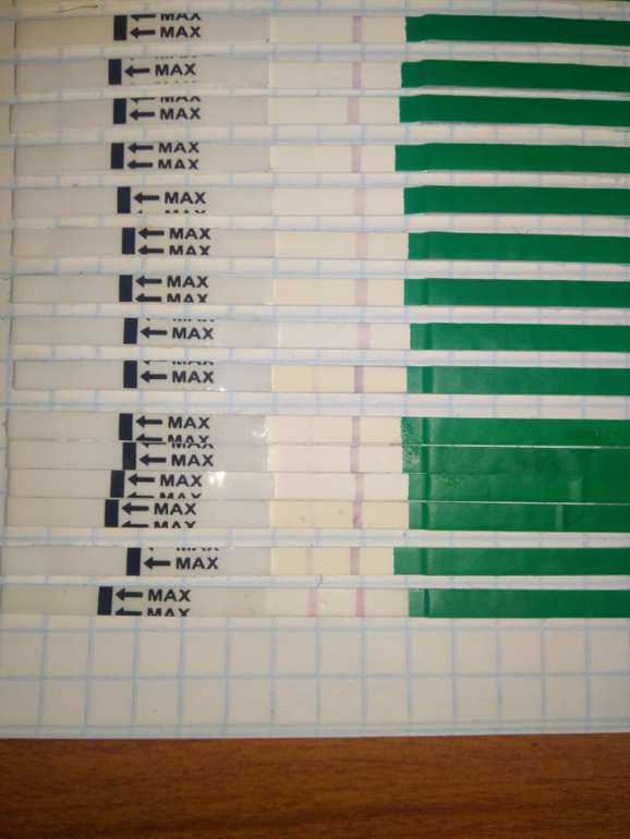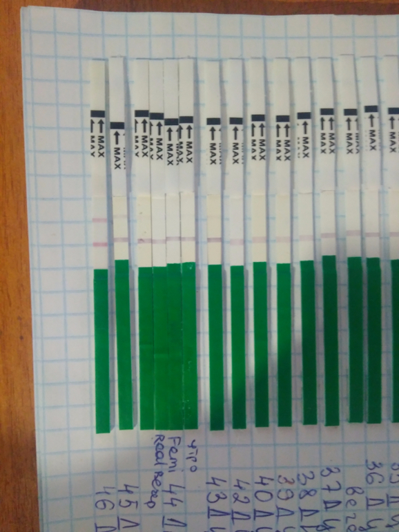 Овуляция( тесты на овуляцию)Посмотрите пожалуйста, со стороны виднее ))) по кат фотки, Не смотрите что такой длинный цикл, с первой беременностью овуляция была на 45 ДЦ, Сегодня 46 ДЦ, тест вроде как положительный ??? или не дотягивает? Но больше меня удивило то,что приложение в телефоне правильно расчитало овуляцию!!!календарь выставил на 47 ДЦ 😨 🤔как так, я думала он средне считает, а тут как могло так правильно совпасть с моими то очень разными циклами от 30 до 68 дц 🤓вот так совпадение 😁в общем фото