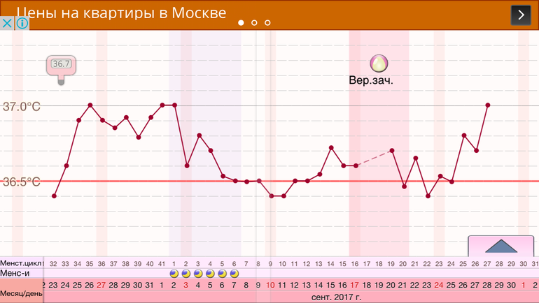 Вы меня сбили с толку. График надо начинать бы вести со 2 сентября (первый день месячных). Исправьте в программе и она вам сразу покажет линию овуляции. У вас тогда все отлично, овуляция была 25.09 или 26.09 уже идет вторая фаза цикла у вас.