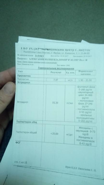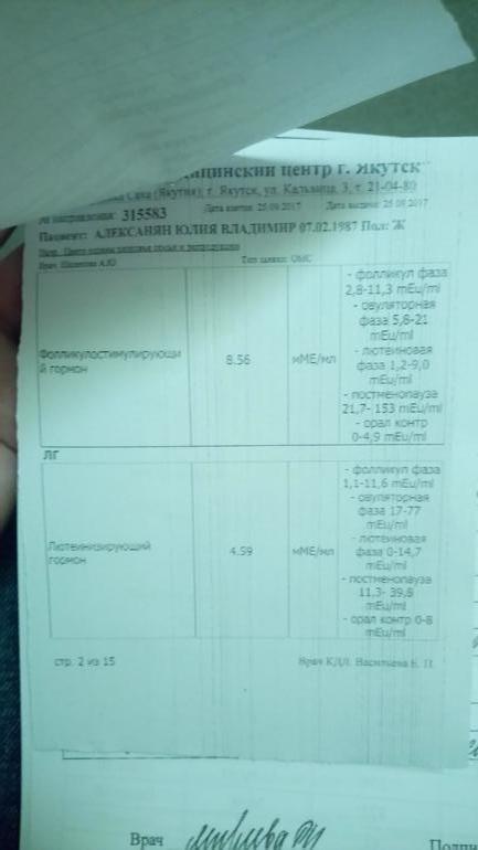 Да я ходила и хожу, не видит в чем причина, меня сейчас в репродукцию отправляют, она говорит там пусть доп обследование делают, гормоны пока говорит не буду назначать.