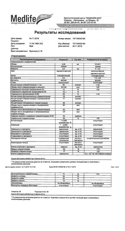В двух последних анализах цифры разобрать невозможно. Сколько там процентов подвижных и неподвижных? Сколько с нормальной морфологией и паталогических в процентном соотношении? В первом анализе много неподвижных и дегенеративных.