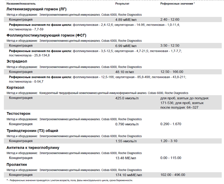 Ну все значения в пределах нормы лаборатории) гормоны щитовидки в норме, ттг хороший, как раз для планирования самое то. Соотношение лг/фсг тоже вроде нормальное, пролактин не высокий. Тут наверное только врач сможет увидеть какие то отклонения, если они есть)