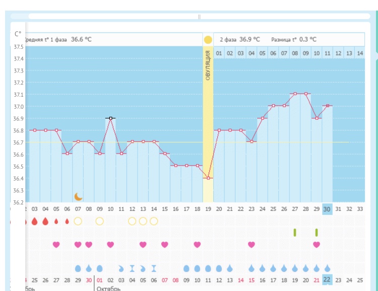 Не надейтесь на график. У меня 36.8 и 36.9перед днём Х было и после. Сейчас 22 недели беременности))))