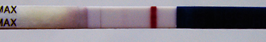 У меня реагент был на фраутесте. Полоска на нем появилась очень сильно позже, чем должна была. И цвет был странный. А хгч был типа 0.5.