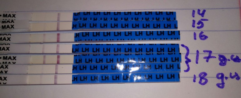 верхний тест это 15.10 вторая вообще слабая, след тест 16.10 обед я почувствовала и выделения начались вот и сделала, она начиналась, потом 16.10 вечер. След 17.10 утро вторая ярче чем первая ну и 17.10 вечер. И последняя 18.10 вечер. Так что следите и больше внимания на выделения уделяет!!!! Они не обмануть! Удачи!!!!