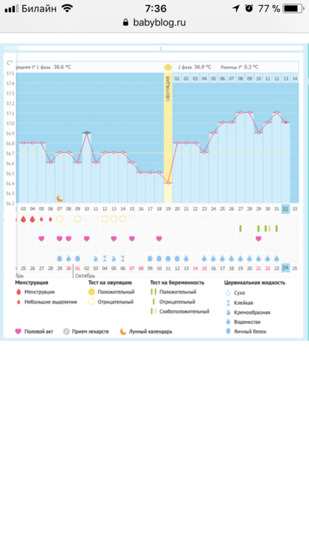 Базальная температура, ТТ, графики БТСпасибо конечно этому циклу за такой красивенный график, такой у меня впервые, и разница и сама тем-ра, обычно тем-ра во 2 фазе максимум 36.7 у меня, в этот цикл я была прям уверена, что получилось, но нет (((( сегодня бт упала, жду М( вернее я их не жду, но им то все равно, они придут) это наверное мой последний график, хочу отдохнуть от этого всего, от этого вечного ожидания, от градусника по утрам. Всем кто ждет // желаю поскорее их увидеть))) а я на отдых