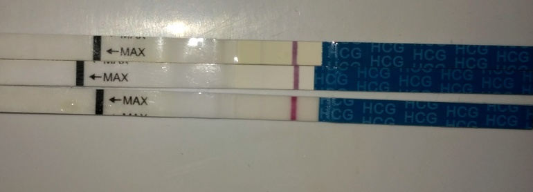 Ждем дня Х (Признаки беременности / Тесты)Девочки,верхний это 9 день после укола,второй это сегодня 12 день после укола утро,третий вечер сейчас. Мне кажется стал ярче нижний? Или кажется?