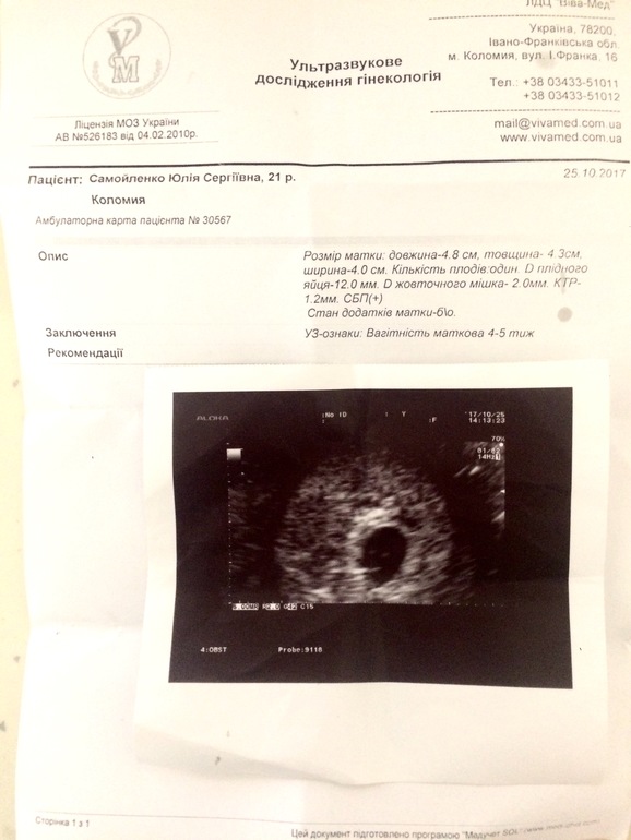 Овуляция была 2 октября, месячные должны были начаться 16-17 октября. От овуляции примерно до 4 недель. А от месячных то получается до 6 недель. ПЯ 12 мм. Я незнаю почему они написали 4-5 недель в заключении, думаю это эмбриональные.