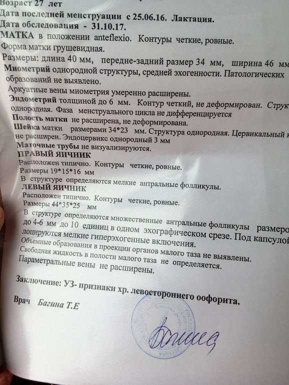 ФолликулометрияДевочки кто-то просил отписаться чем все закончилось. Жаловалась на ноющие боли, немного выделений и т.д. В итоге беременности нет, но все равно ничего не понятно. Вдруг кто-то еще что-то может понять по узи помимо врача. Короче сегодня на приеме гинеколог посмотрела, говорит острого процесса нет, но левый яичник больше правого и какой-то "тугой". Сказала хрен еще что назначишь из-за гв. Сказала ставить половину свечки с индометацином и томпоны с белой глиной делать. Взяла мазки и велела прийти через неделю. Что интересно будет понятно через неделю(( два врача и никто понять не может воспаление это или просто организм к месячным готовится.