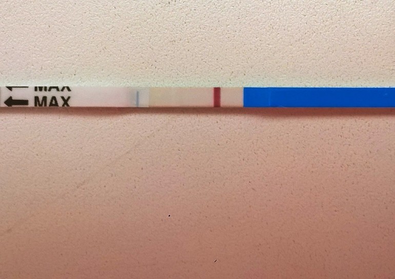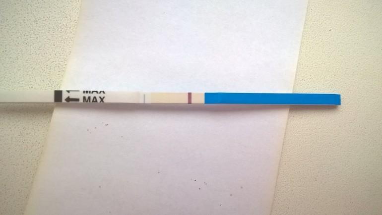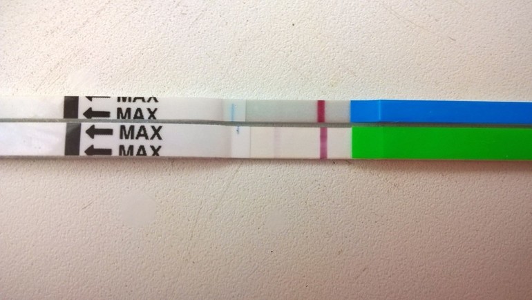 На Б я тоже вижу полоску, а на О продолжайте тестится, полоска должна быть ярче или как контрольная. Я сегодня вроде словила ее, можете посмотреть для примера.