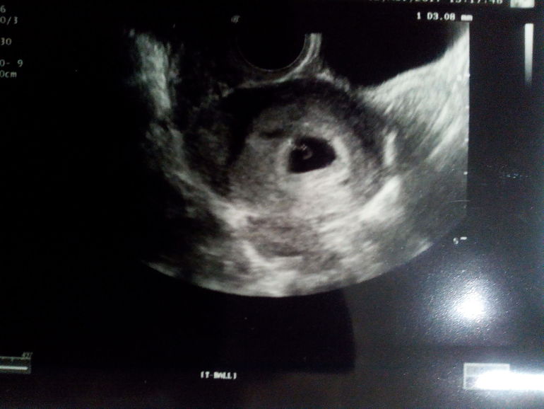 Брач успокоил... Б в матке, видно пока что только ПЯ, желточный мешочек и эмбрион. Ну как эмбрион... Точка, размером 3мм.