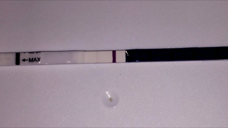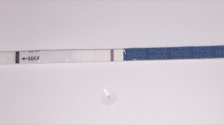 Полоска розовая должна быть. В пролетный цикл все полоски были серые от Прегнила. А в Б розовая) У вас она такая и есть)