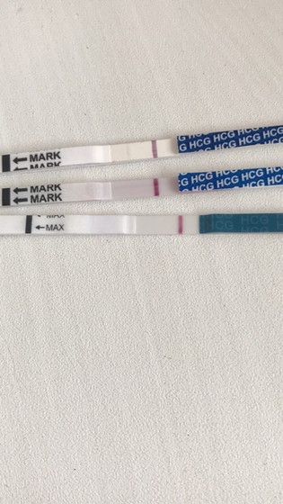 Все в одну мочу сделаны? На первом так по мне беременная полоска. Может он у вас весь хгч себе забрал?) удачи вам. Сделайте вечерком ещё