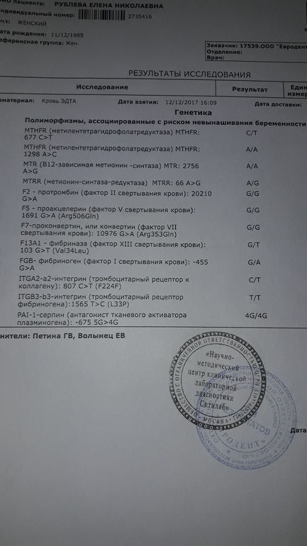 АнализыКак я надеялась,что все будет хорошо...но...всегда есть но. К врачу еще не ходила,завтра иду к геникологу просить направление к гематологу. Я все думала ,что повлияло на выкидыш...стресс,нервы,инфекция или как говорили врачи...случай. Скоро пдр и меня все больше накрывает...думаю постоянно... Девочки у кого такие же мутации? как проходило лечение?через сколько разрешили планировать?и если кто уже родил,как прошла беременность? я так боюсь ,что местные врачи мне не смогут плмочь...а может только накручиваю себя...