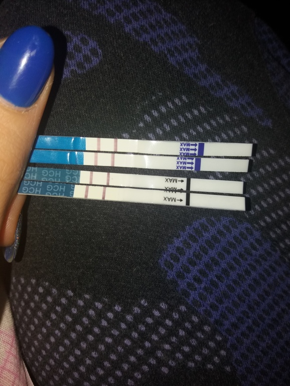 Приезжаю домой,вечером. Делаю тест и вижу что как он намокает так и появляется контрольная полоска и вторая. Глаза на лоб лезут. Думаю,да нееее. Брак. Пошла достала второй тест. Такая же картина - 2 полоски. Я не верила своим глазам! Заходит муж домой-видит со мной что то не так. Я говорю 'ты сейчас офигеешь' и показываю ему тест с двумя жжжжирнющими полосками. Отправляю его за еви тестом. Приходит,говорит пошли. Я говорю не хочу в туалет,а он-выдавливай😂. Ну выдавила и опять 2 полоски.