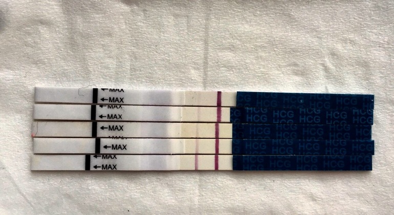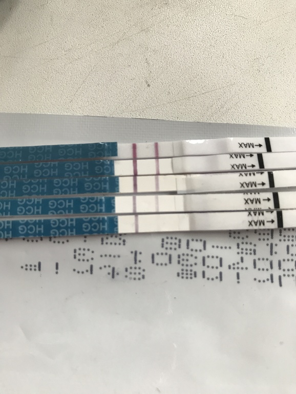 По фото незаметно, но они у меня так и не сравнялись) врач сказала, что по тестам динамику не отслеживают, они не показательны. Так что я просто сдавала хгч)) потому что с тестами замучилась (я сделала ооочень много, на фото далеко не все🙈) и каждый раз полоска то темнее, то светлее... все нервы себе вымотала 😡