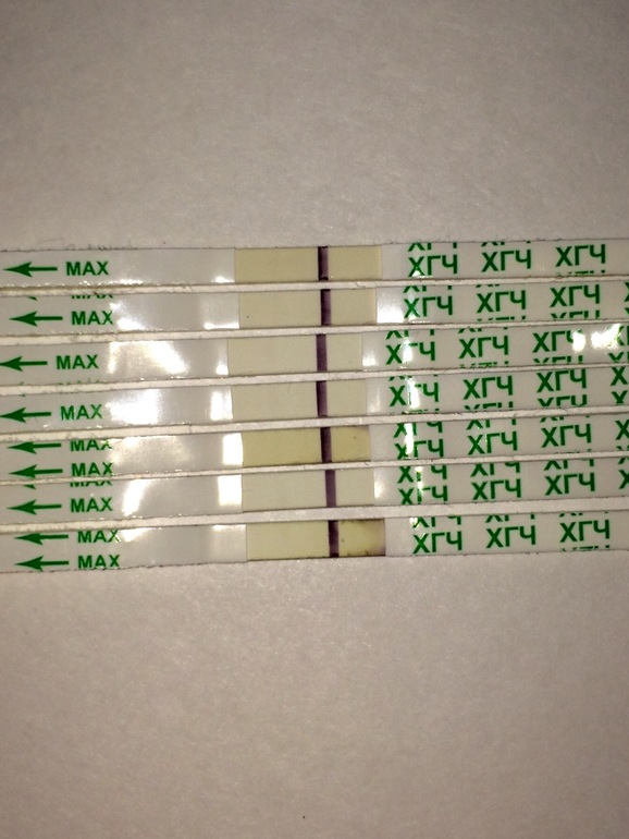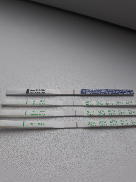 На двух верхних вижу, на третьем почти совсем нет, самый нижний - чистый. У меня в прошлом цикле за пару дней до месячных два разных теста выдали чуть видную вторую. Я офигела, т.к. никак не могла заБ в том цикле. Потом месячные начались. Тесты сейчас некачественные.