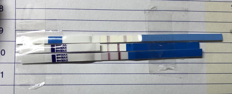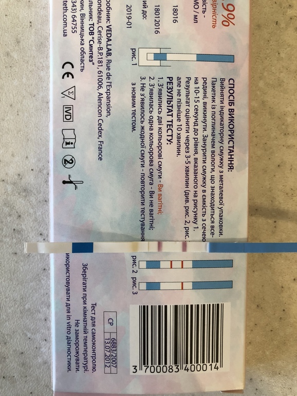Для понимания, скину первый вчерашний тест, мне кажется он поярче был. И тестовая и контрольная полоски одного цвета. ХГЧ поеду сдам сейчас.