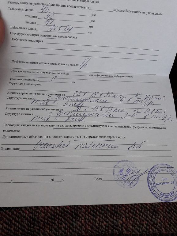 За долгое время первая задержка, тесты молчат, сходила на УЗИ (фото), все чисто, грудь болит очень сильно и все. Вызывать уже дюфастоном М??? Осенью гармоны были в норме все.
