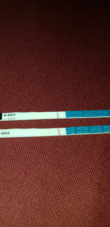 Задержка 2 день сегодня , верхний тест вчера утром , нижний сегодня.