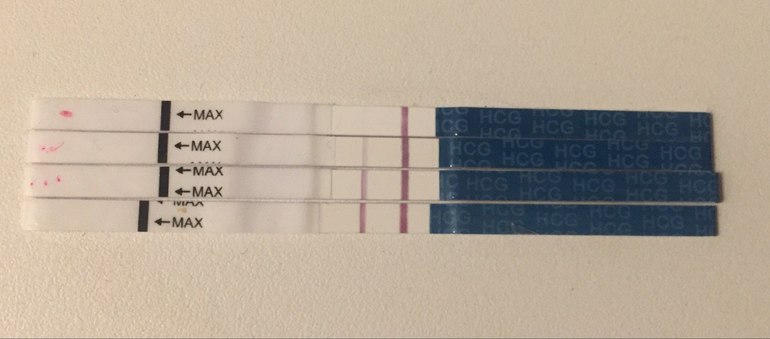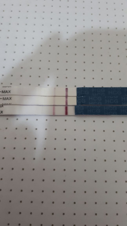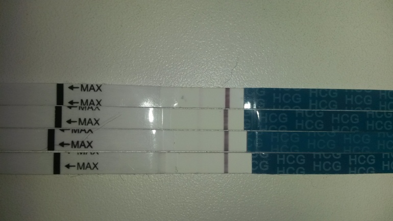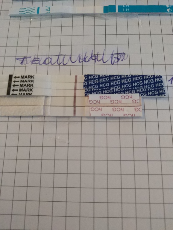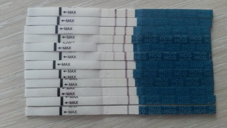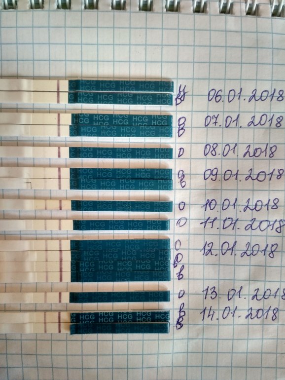 Я тоже почти уверенна в беременности но напрягает что нет динамики!можете свои тесты показать?