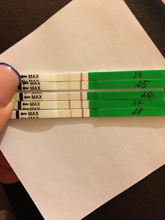Первый раз делала тесты на овуляцию,,,Девочки правильно я поняла О была 27 числа?! Все тесты проводили в одно время, около 10 часов вечера. Сегодня получается 1 ДпО?