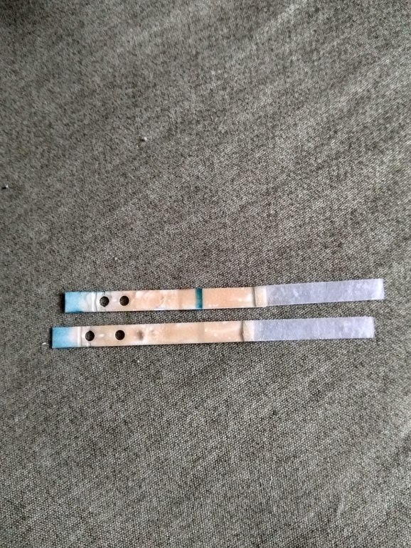 Беременна 1-2. Но там на одной полоске //, на другой /. Вторую камера не захватила, она очень бледная. Это остатки укола)