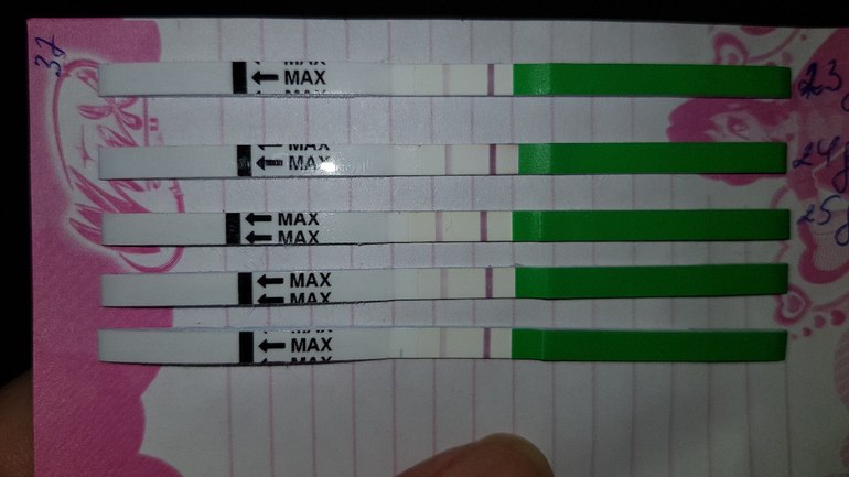 Овуляция( тесты на овуляцию)Так как цикл у меня большой, врач сказала в этом месяце попробуй тесты на овуляцию. Так как я это делаю впервые, выложу сюда для обозрения. Если честно ,то не могу понять было или нет? Уже начинаю прислушиваться к организму, но пока себя не накручиваю. Т.к. пытаюсь забеременеть с июня месяца 2017 года и все ни как. Но не опускаю руки. Что скажите?