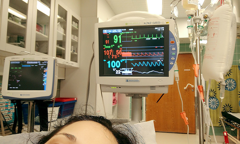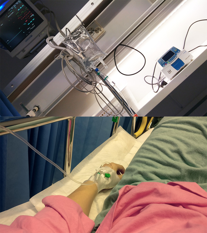 Снова вопросы, что, когда, вес, рост. Помогли переодеться. Замерили давление, подключили датчики, сделали кардиограмму, взяли кровь на анализ, поставили первую капельницу рингера-ацетата (Ringer-Acetat infuusioneste). Снова я ждала врача из гинекологического отделения. Сколько я ждала, не знаю. Кровь все вытекала из меня и вытекала, живот болел все сильнее и сильнее. Я лежала и ждала, пока меня не начало корчить и снова начался приступ удушья. Я начала звать на помощь и предупредила, что мне плохо и тошнит. Да, тут меня начало рвать и да, успели поднести коробочку. Дальше я не совсем помню, приходила врач до этого состояния или после. Меня повезли в какое-то другое помещение.
